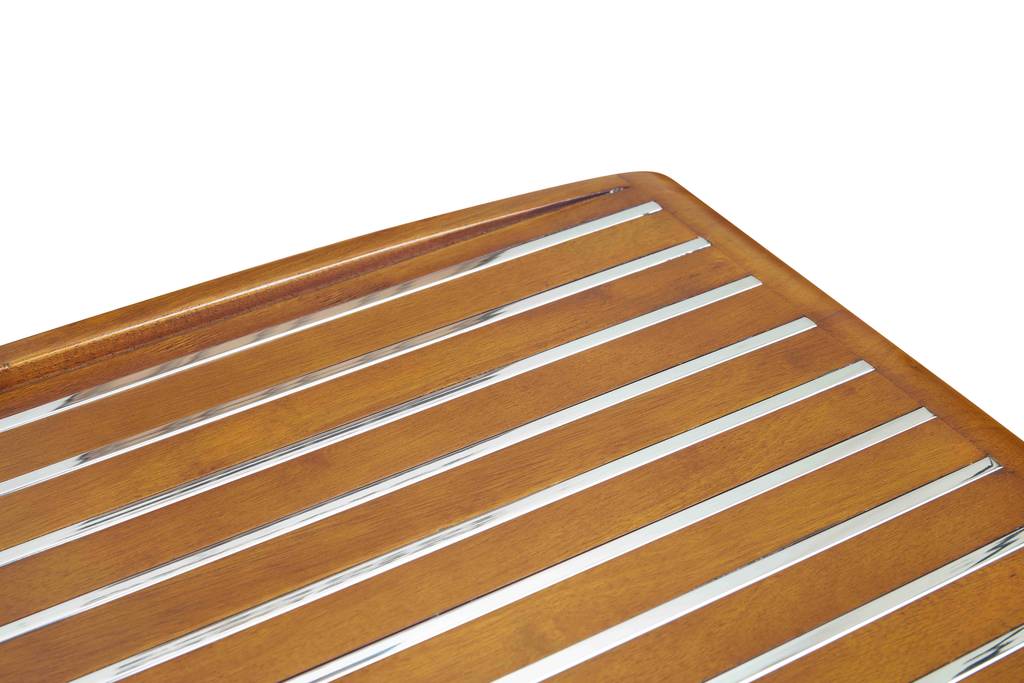 • Tischplatte mit dekorativen Edelstahlleisten