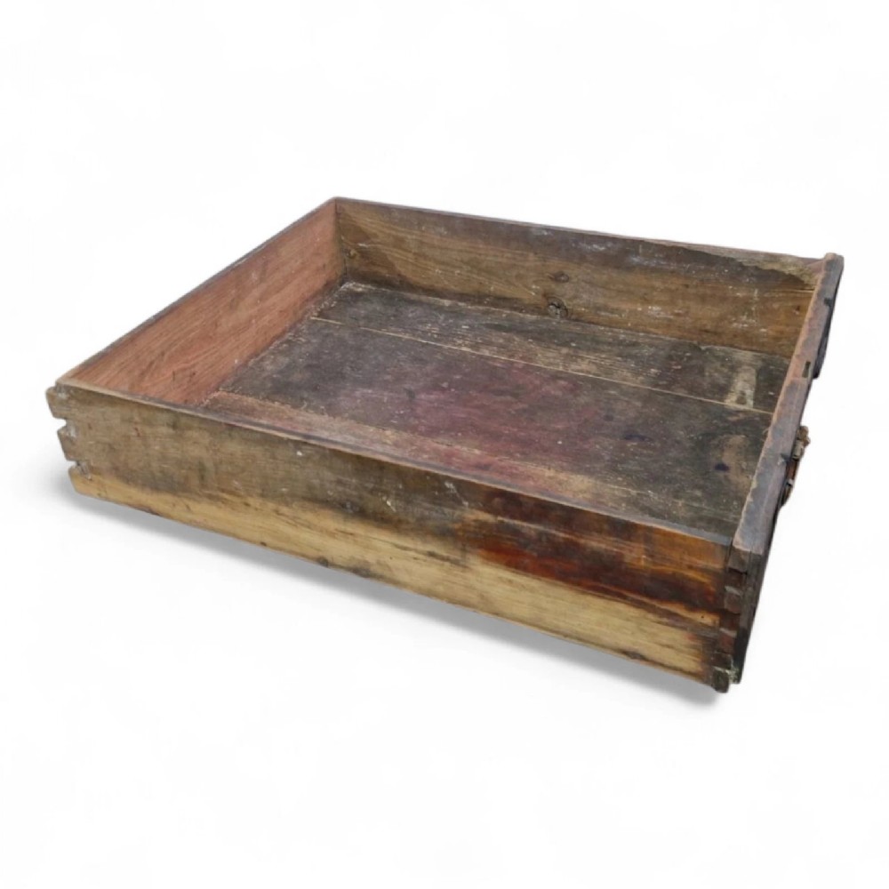 - Aufbau: Zwei Schubladen mit originalen Messinggriffen