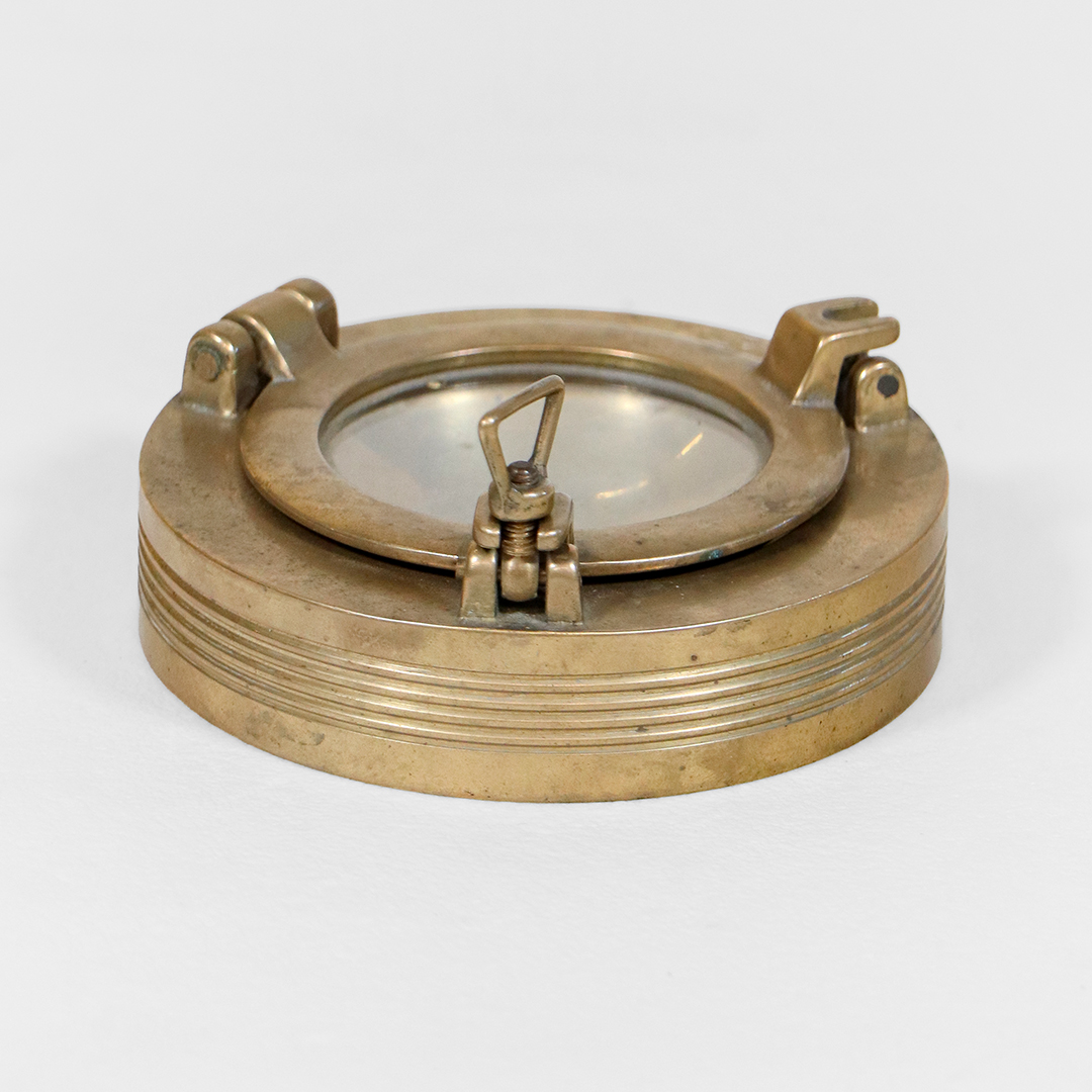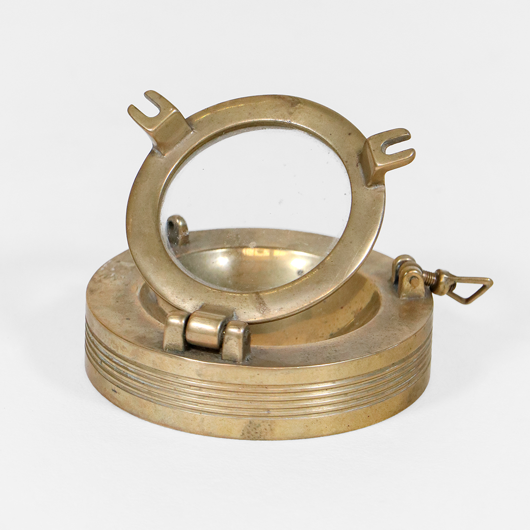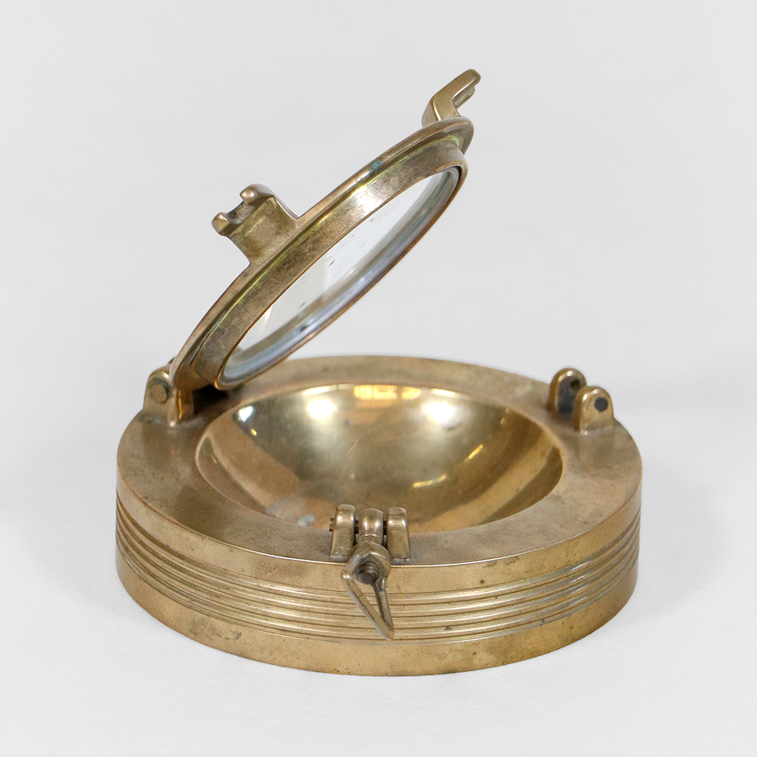 Vintage Messing Aschenbecher mit Glasdeckel im maritimen Stil