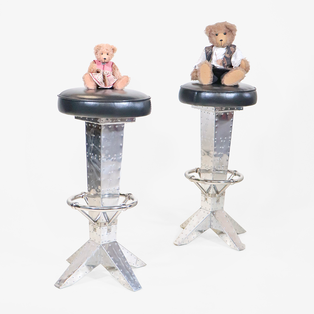 Vintage Barhocker im Flieger Design mit Aluminium und Lederbezug