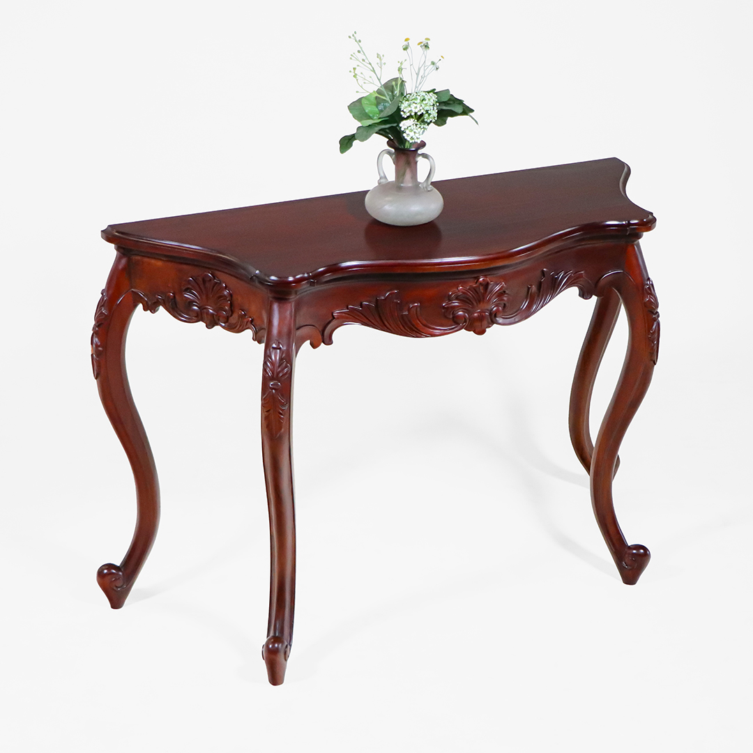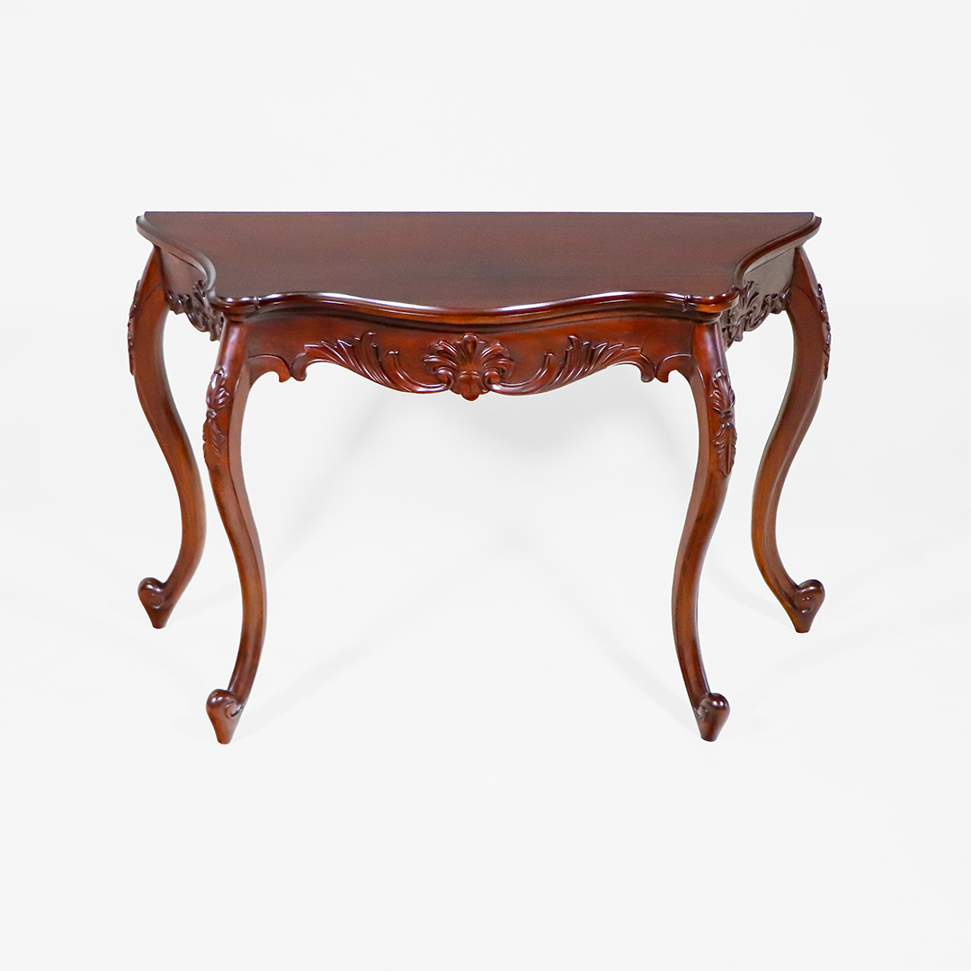 • Merkmale: Geschwungene Beine, feine Schnitzereien, halbmondförmige Tischplatte
