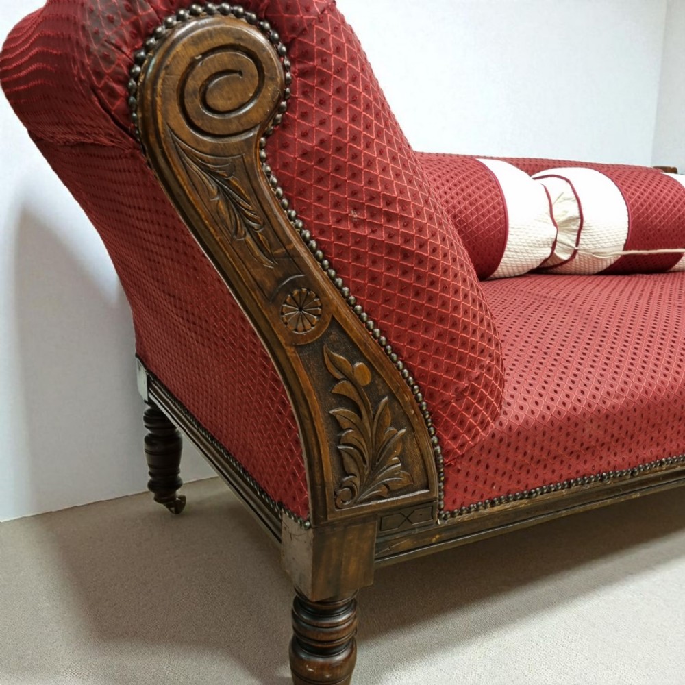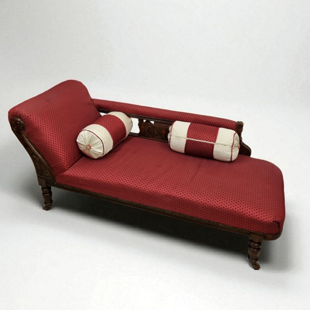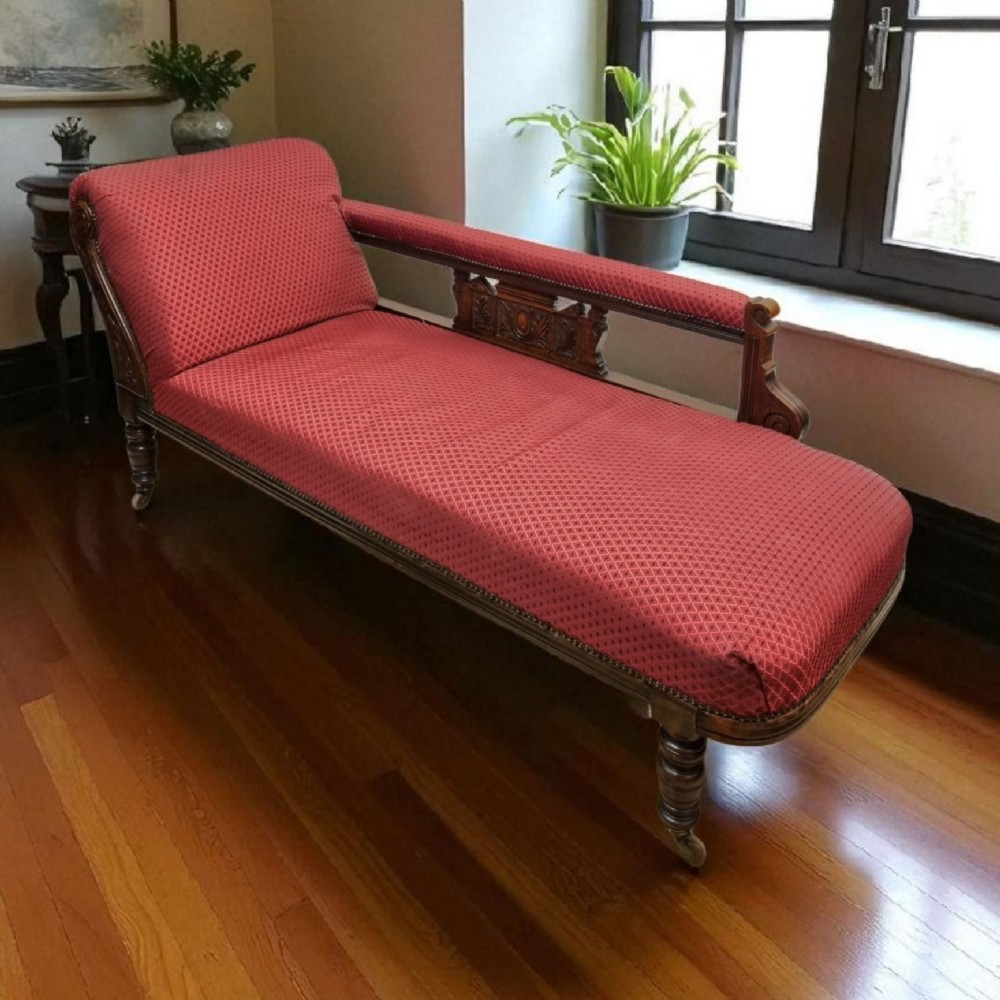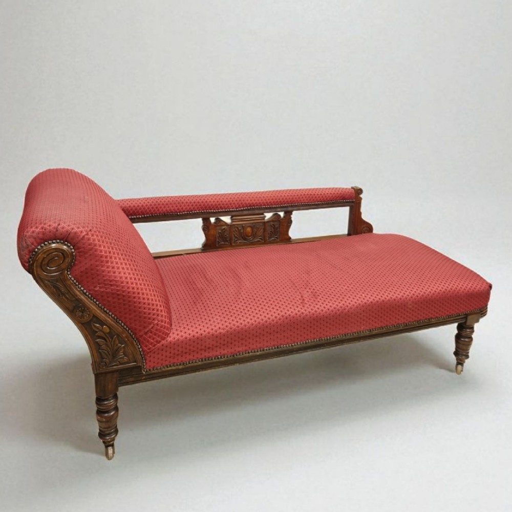 Chaise Longue Edwardian, C.1910 – Handgeschnitztes Eichenholz & Polsterung