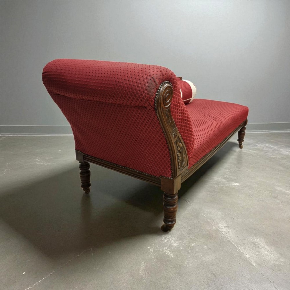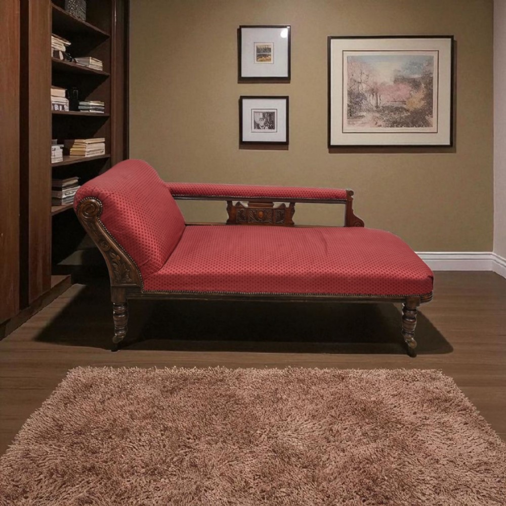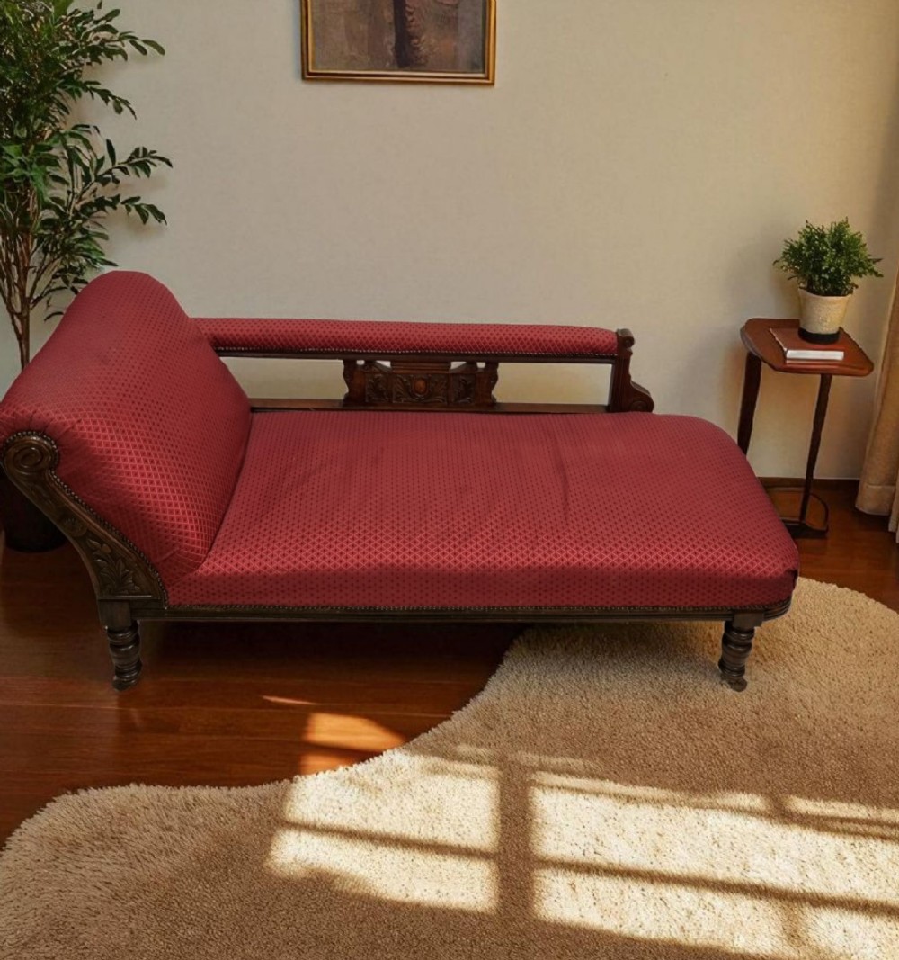 Antikes Chaise Longue - Chaise Longue antik aus massivem Eichenholz - Chaise Longue antik mit rotem Bezug