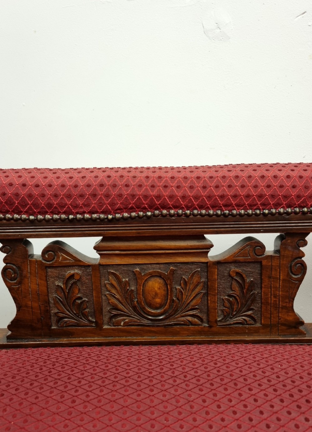 - Besonderheiten: Dekorative Holzschnitzereien, elegante Form, originalgetreu erhalten, mit passenden Polsterrollen