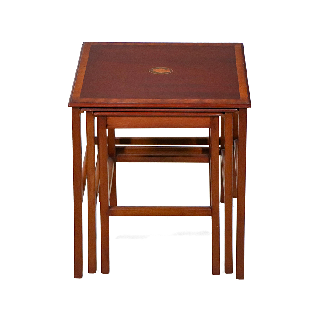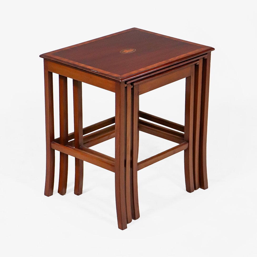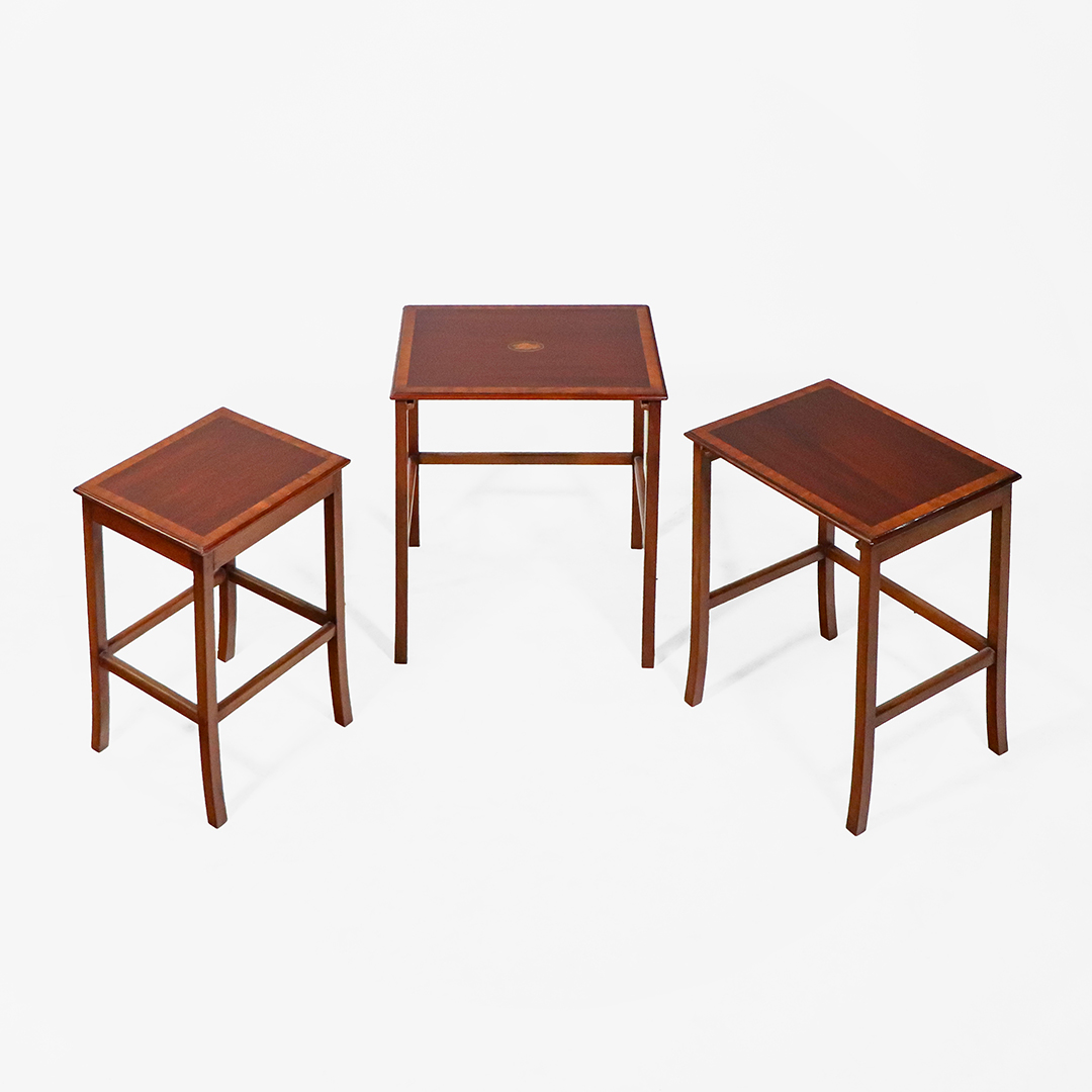 Elegantes Nest of Tables im edwardianischen Stil, handpoliert aus massivem Mahagoni gefertigt, mit feinen Intarsien und klassischer Linienführung