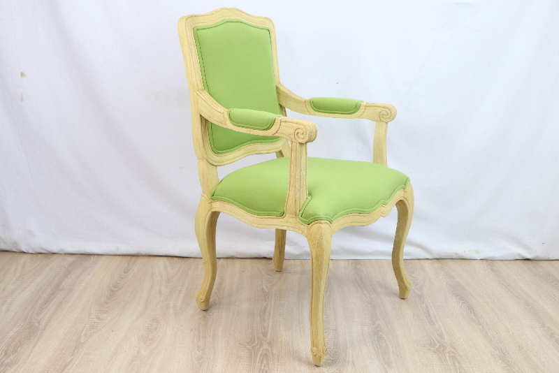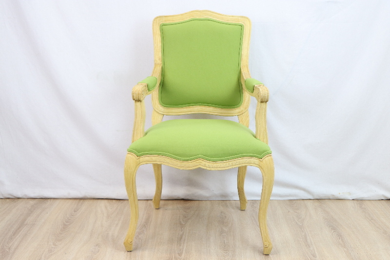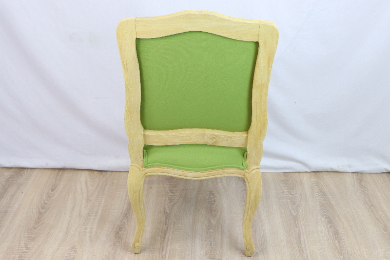 Der grüne Polsterbezug verleiht dem Stuhl eine natürliche, edle Ausstrahlung und harmoniert hervorragend mit klassischen wie modernen Einrichtungen. Die komfortabel gepolsterte Sitzfläche, die hohe Rückenlehne sowie die weich gepolsterten Armlehnen sorgen für angenehmen Sitzkomfort.
