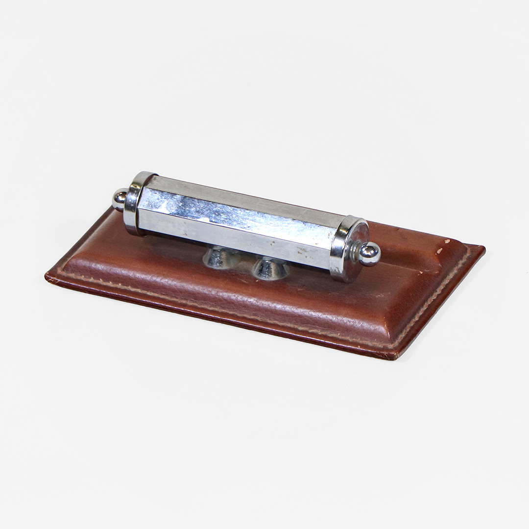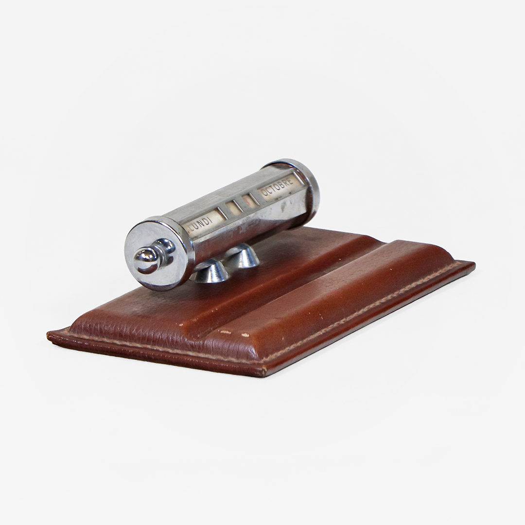 Französischer Art Deco Tischkalender aus Chrom und Leder – Schreibtisch Kalender ca. 1930