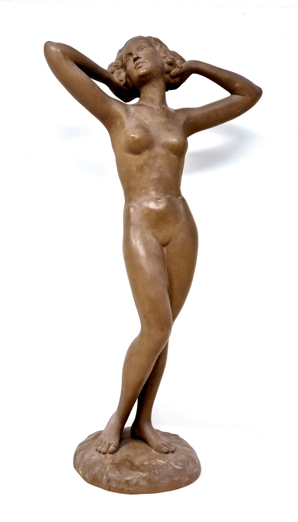 Art Deco Goldscheider Terrakotta Frauenfigur – Elegante Aktstatue aus den 1930er Jahren