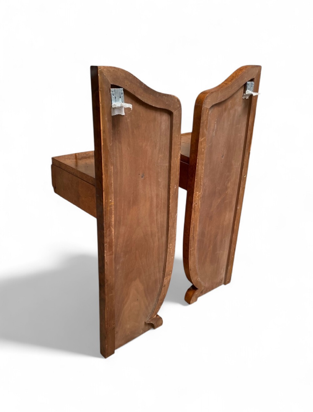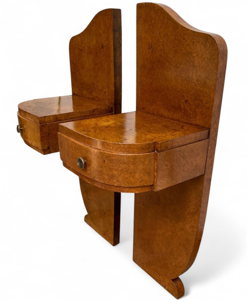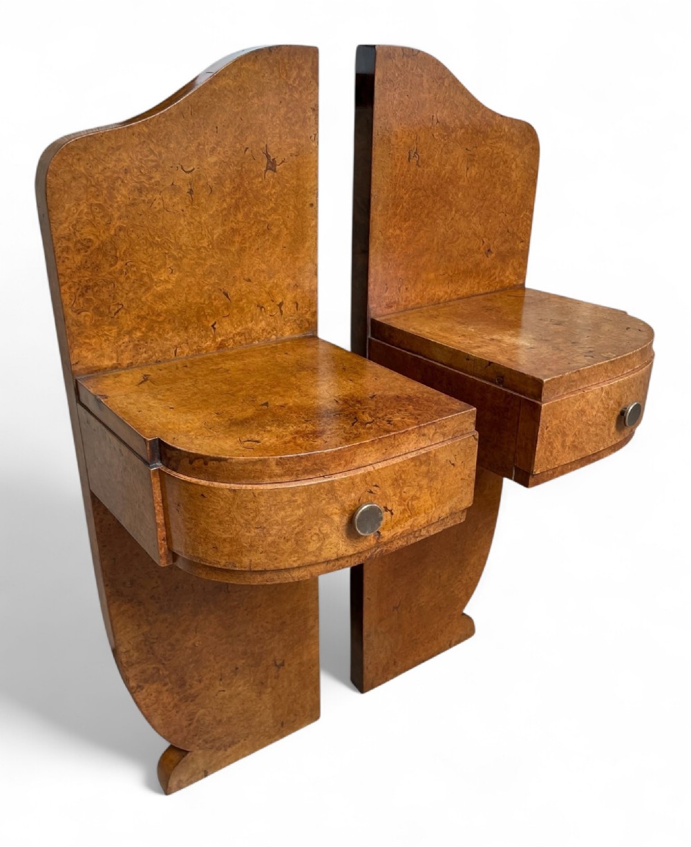 Paar Art Deco Nachttische aus Amboyna-Maserholz - Art Deco Wandnachttische aus Maserholz mit Metallgriffen - Antike Nachttische im Art Deco Design