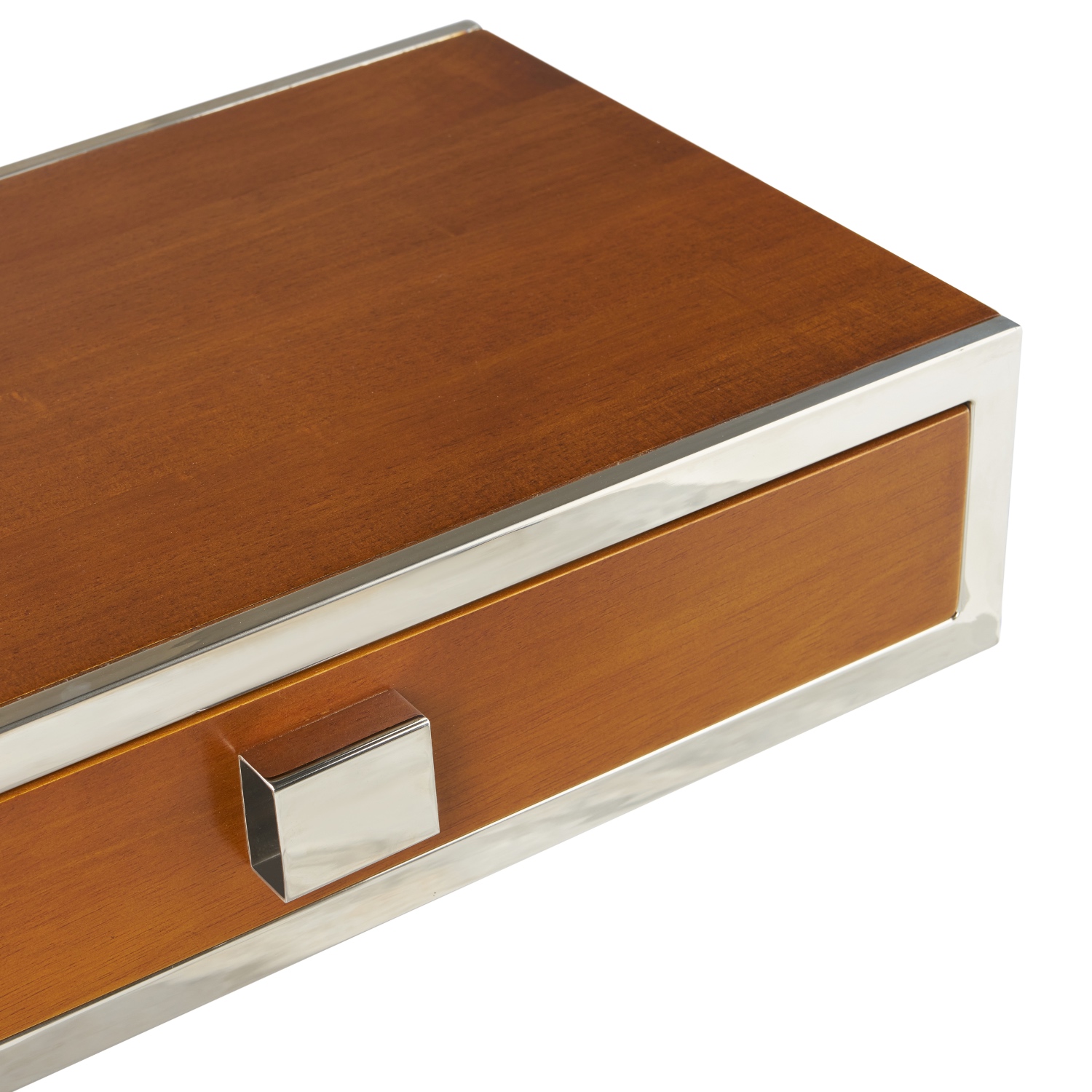 Die Kombination aus warmem Massivholz und kühlem Edelstahl ist ein typisches Merkmal moderner Möbelgestaltung. Dadurch lässt sich diese Konsole im modernen Stil vielseitig mit verschiedenen Einrichtungsstilen kombinieren.