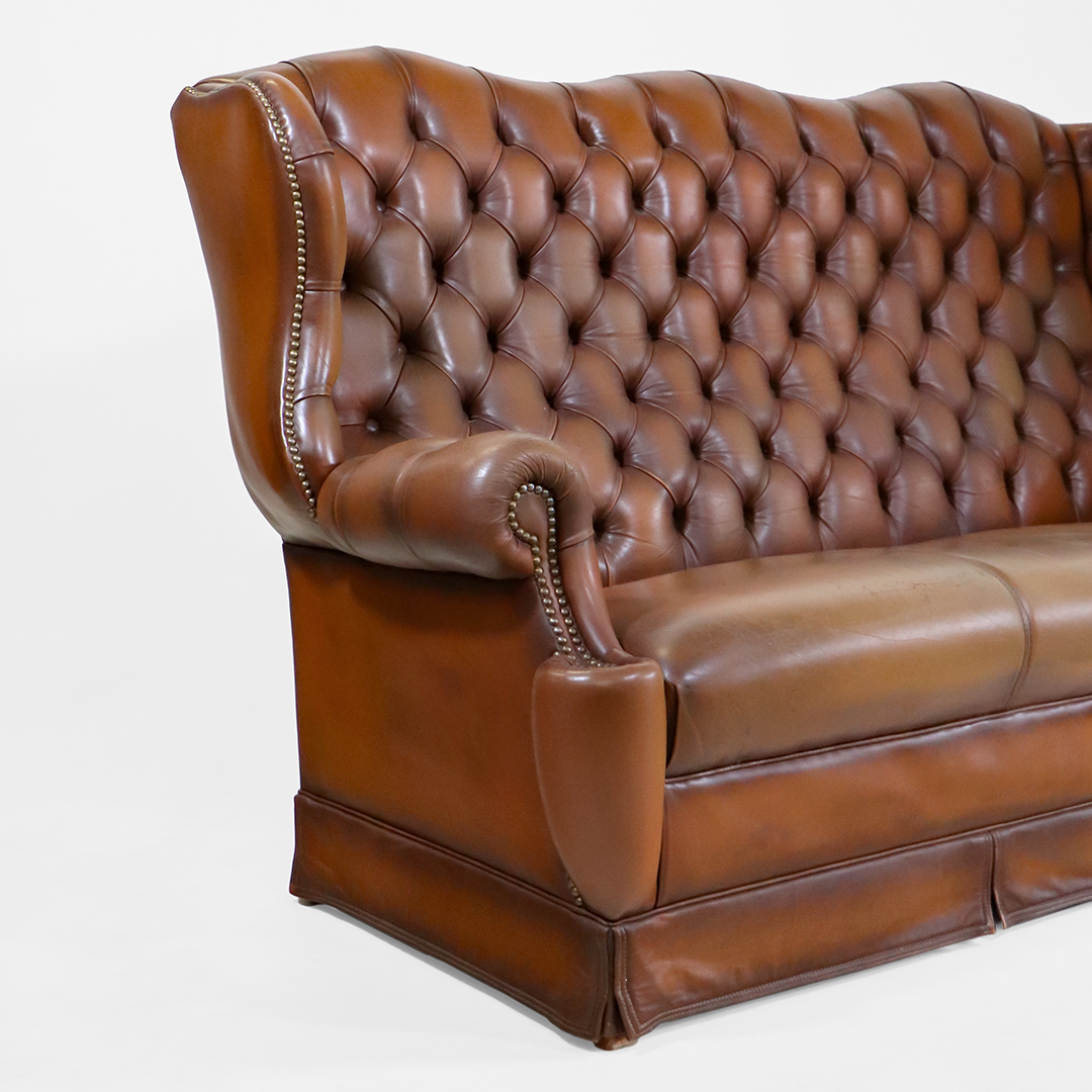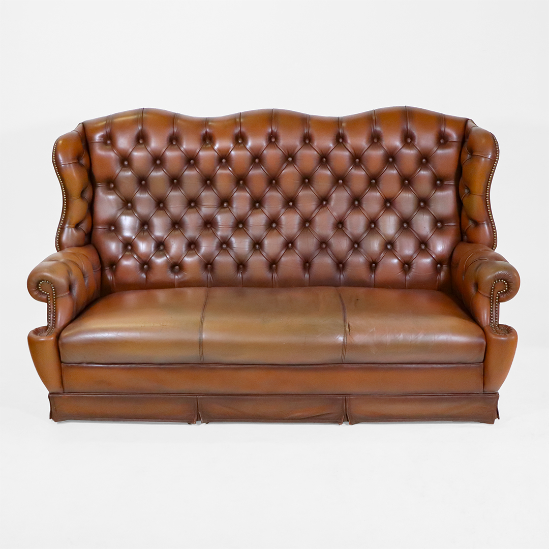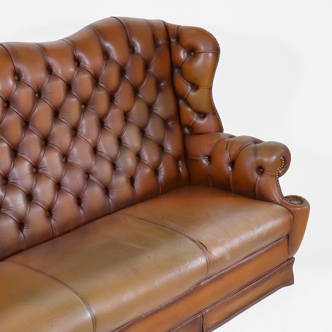 Chesterfield 3er Sofa Vintage – Ohrensofa 3-Sitzer mit hoher Rückenlehne – Klassischer englischer Stil mit Patina
